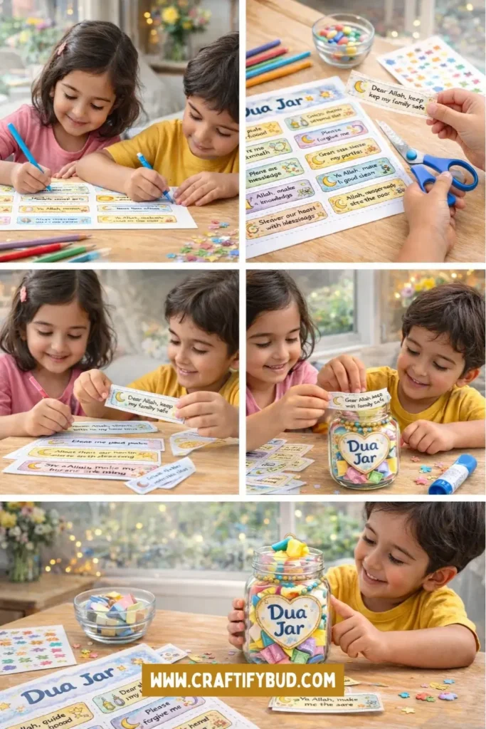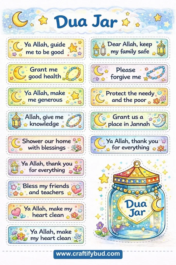 Each day, a child can pick one dua from the jar. It gently builds a habit of reflection without feeling forced.
