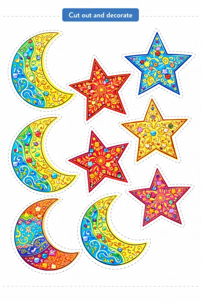 These Ramadan craft ideas are designed for home, classrooms, mosques, and community settings. They require minimal supplies and work beautifully with printable templates.